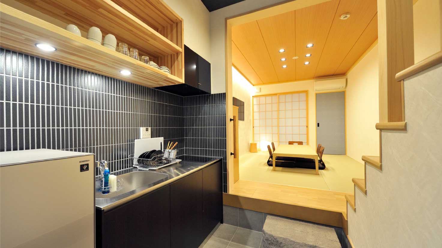 ここは一棟二部屋の京町屋風のお宿です。